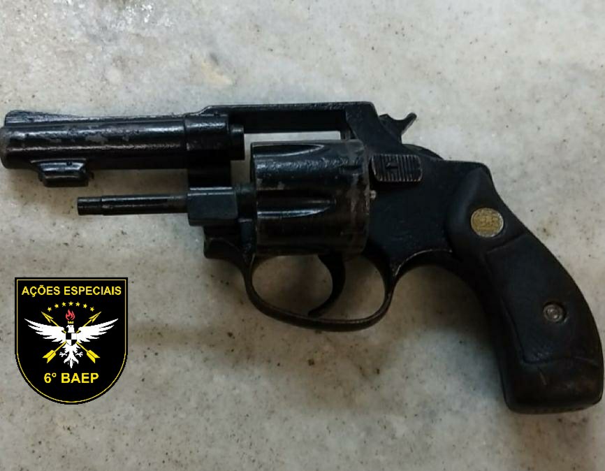 A equipe estava em patrulhamento quando suspeitou dos ocupantes de uma motocicleta. Na busca pessoal foi localizado, com o passageiro, um revólver calibre 32. Após realizar a pesquisa do emplacamento constou produto de roubo.