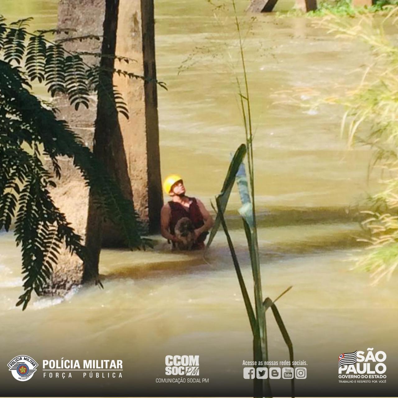 Hoje (31), o Corpo de Bombeiros foi acionado para ocorrência de animal em situação de risco pela Rua Benedito Alves, em Lavrinhas. No local o cão encontrava-se ilhado na estrutura de uma ponte desativada no Rio Paraíba. A equipe,  utilizando técnicas de salvamento aquático conseguiu acessar o cão e realizar o salvamento. O animal foi entregue aos cuidados do proprietário.