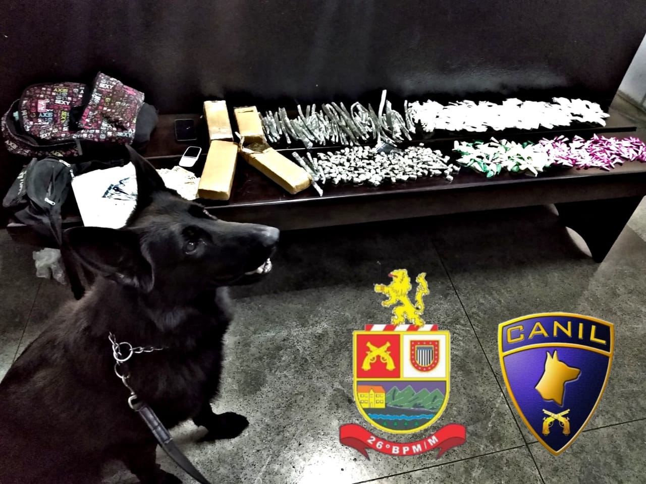 Com o apoio do cão policial Ianco, foram localizados outros quatro tijolos de maconha.