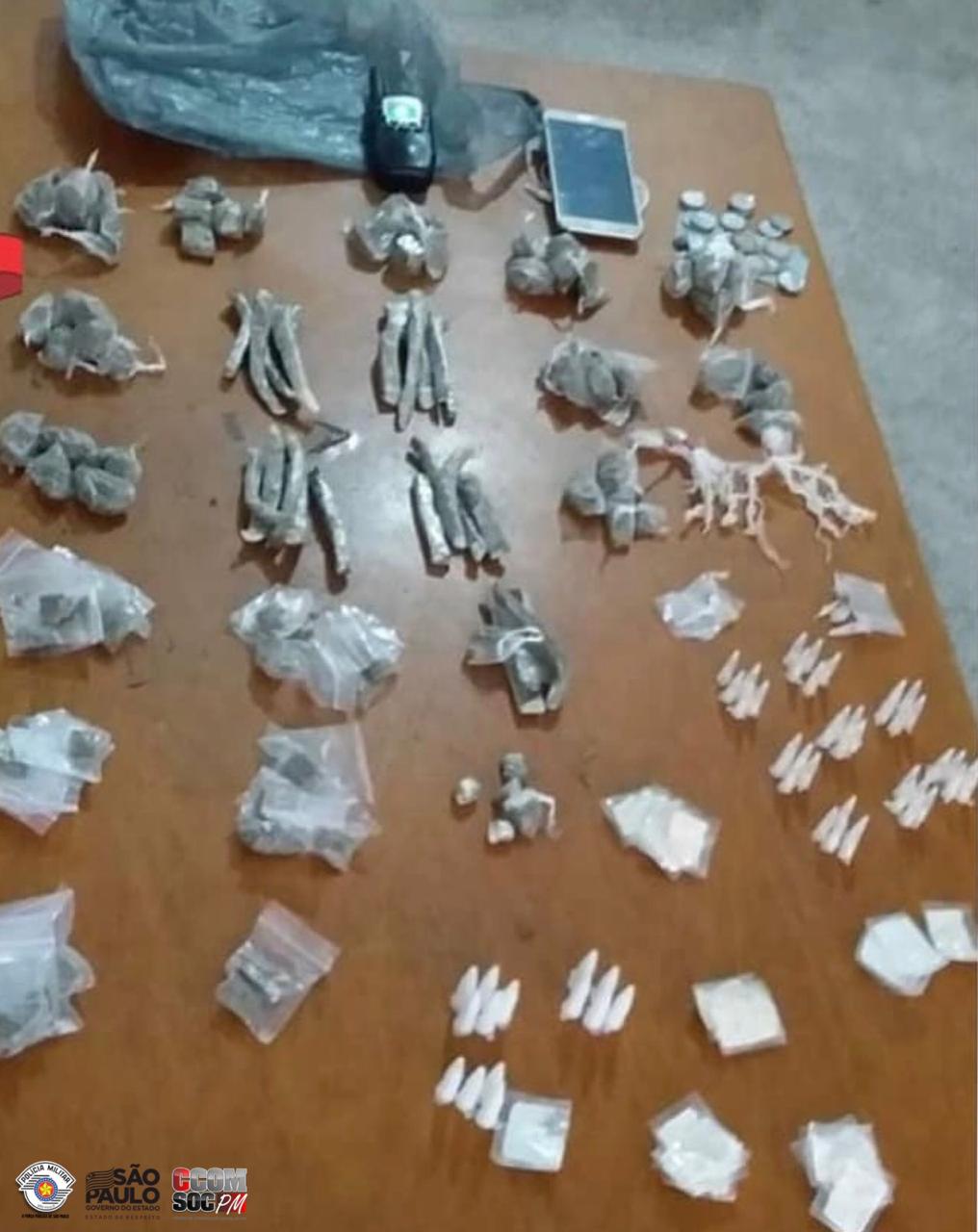 Sexta-feira (26), policiais militares do 26º Batalhão de Polícia Militar Metropolitano em patrulhamento pelo bairro Jardim Vassouras I,  visualizaram uma mulher em atitude suspeita. Com a aproximação da viatura, a suspeita tentou fugir dispensando uma sacola plástica, porém foi alcançada e abordada. Ao verificar o interior da sacola, a equipe localizou cocaína, maconha, crack e dinheiro. A criminosa foi encaminhada a Distrito Policial de Francisco Morato, onde permaneceu à disposição da Justiça.