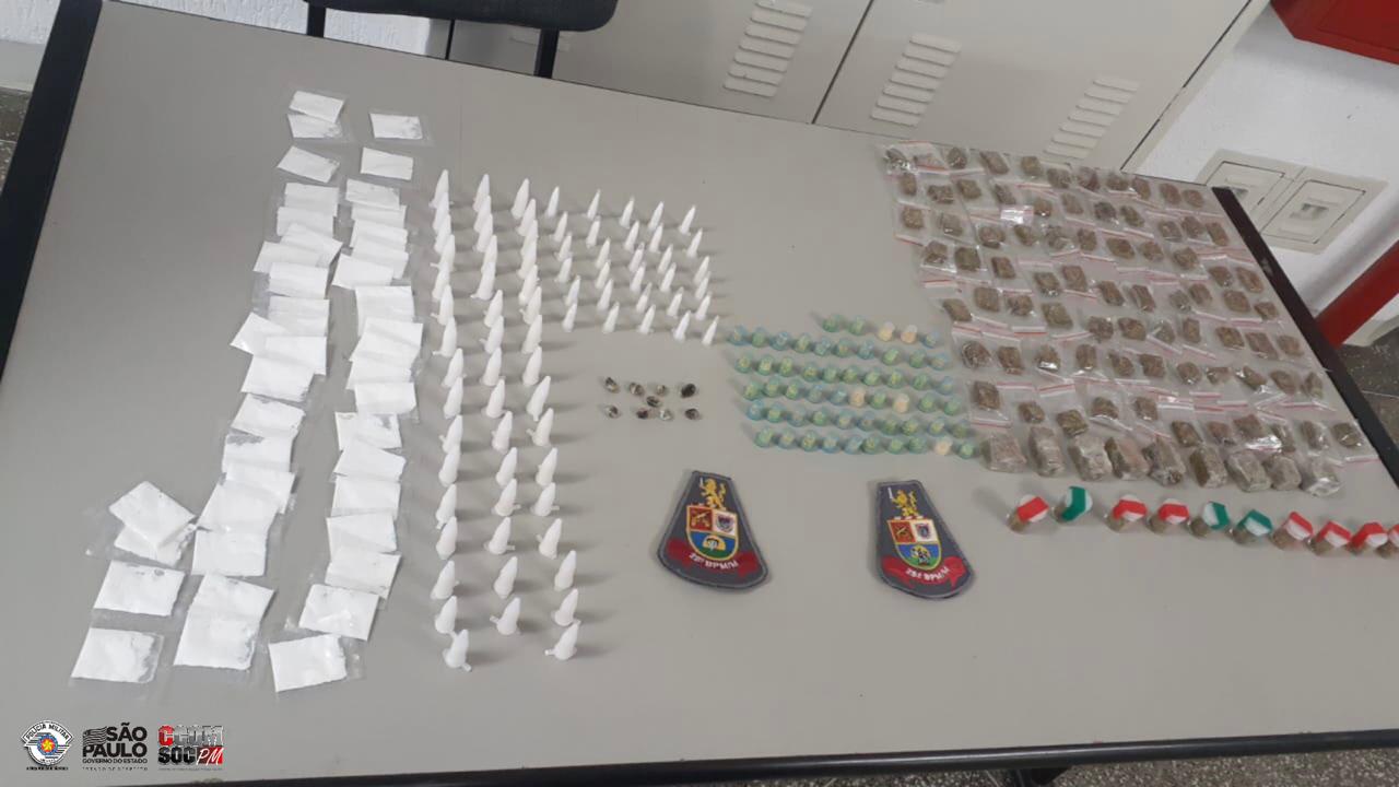 Segunda-feira (28), policiais militares do 28º Batalhão de Polícia Militar Metropolitano realizavam o patrulhamento pela Rua Mestre Rufino, Cidade Tiradentes onde visualizaram dois homens em atitude suspeita, os quais ainda tentaram fugir, mas um deles foi detido. Indagado, ele revelou que estava traficando, bem como indicou onde estavam 121 pinos com cocaína, 106 porções de maconha e 55 pedras de crack. A ocorrência foi apresentada no 54º  Distrito Policial, onde o criminoso permaneceu à disposição da Justiça.