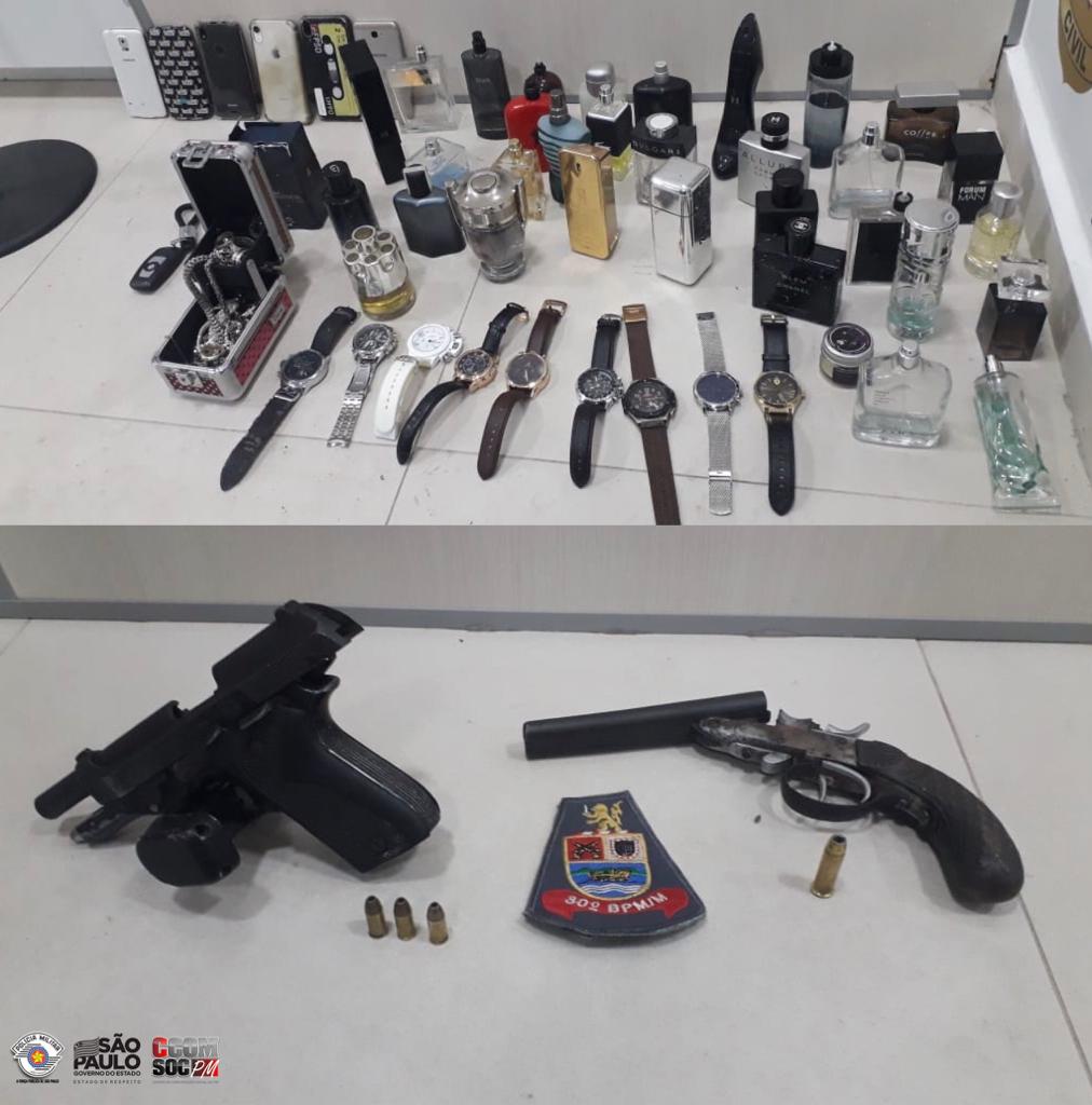 Nesta terça-feira (22), por volta de 03h00, os policiais militares do 30º Batalhão de Polícia Militar Metropolitano foram informados sobre um roubo a residência por Ribeirão Pires. Atentos, os policiais militares conseguiram, logo em seguida, localizar uma BMW branca, ocupada por três homens em atitude suspeita. Os infratores empreenderam fuga, iniciando-se o acompanhamento por várias vias, até que, após cerco, o veículo foi interceptado pela Avenida da Saudade, em Mauá. Com a abordagem os três criminosos foram presos, duas armas, munições e todo material subtraído foi recuperado. A ocorrência foi apresentada no 1º Distrito Policial de Mauá.