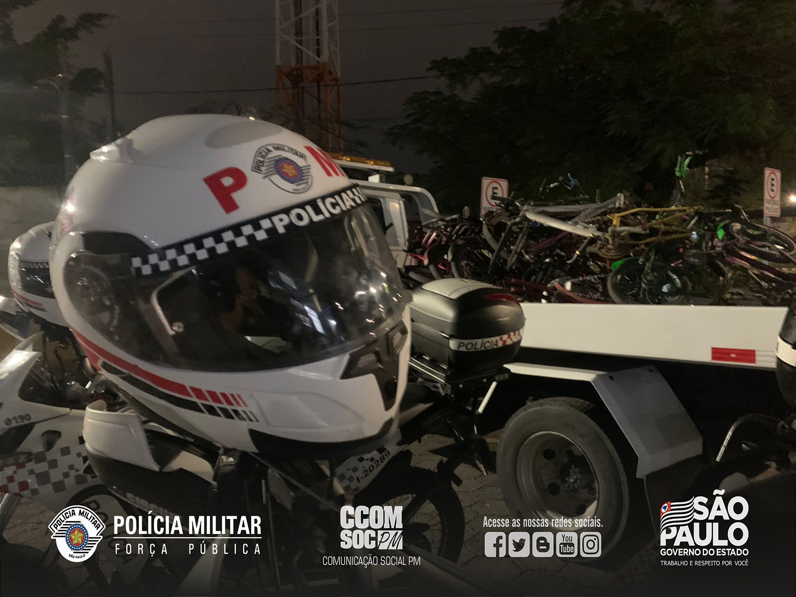 Quinta-feira (19), uma equipe de ROCAM do 20º Batalhão de Polícia Militar do Interior em patrulhamento pelo bairro Estrela Dalva em Caraguatatuba, abordou um indivíduo com uma bicicleta furtada há poucos instantes. O criminoso informou estava responsável em levar a bicicleta para o dono de uma bicicletaria, que as pintava e vendia. Próximo ao local da abordagem foi encontrado outro indivíduo que confirmou ser o responsável em furtar as bikes e indicou a casa do dono da bicicletaria. Logo as equipes com apoio de outras viaturas foram até o local e encontraram um terceiro indivíduo envolvido, na casa dele foram localizadas 07 bicicletas furtadas e em sua bicicletaria mais 15. Ele confirmou que comprava as bicicletas, pintava, trocava peças e vendia. Diante disso, foi dada voz de prisão aos criminosos que foram presos em flagrante e encaminhados à cadeia pública. Na delegacia compareceram três vítimas que reconheceram suas bicicletas.