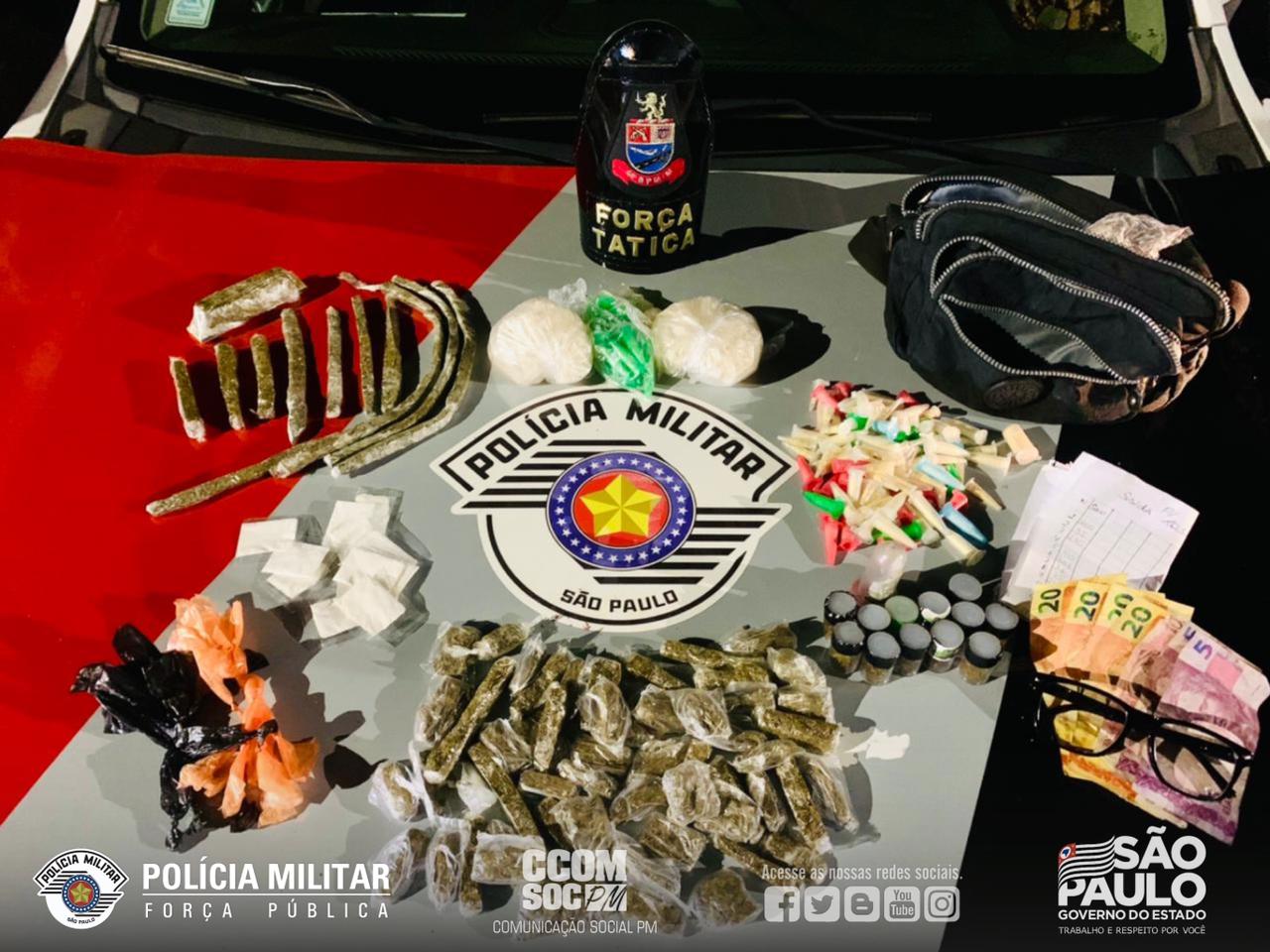 Sexta-feira (25), policiais militares do 44º Batalhão de Polícia Militar Metropolitano prenderam um traficante no Parque das Nações, em Guarulhos. A equipe realizava o patrulhamento quando visualizou dois indivíduos, os quais foram detidos. Com os abordado foi apreendida uma sacola contendo drogas e dinheiro. A ocorrência foi encaminhada ao 4º Distrito Policial, onde os criminosos permaneceram à disposição da Justiça.