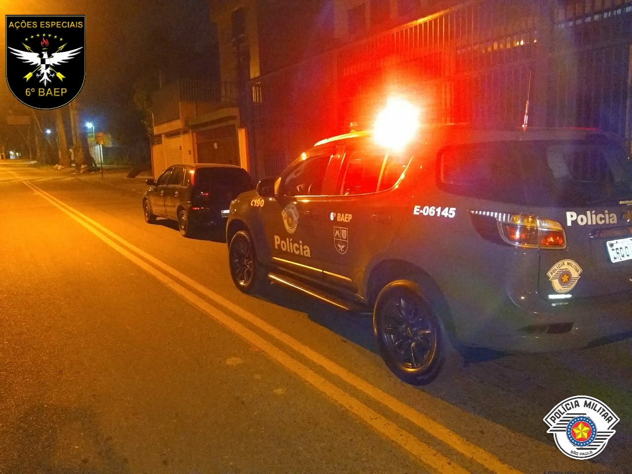A equipe do 6° BAEP, durante patrulhamento tático pelo município de Santo André, visualizou dois indivíduos em atitude suspeita ocupando um veículo GM CORSA (Produto de Roubo). Os indivíduos ao receberem ordem de parada empreenderam fuga por algumas ruas, até serem abordados pela Estrada Cata Preta onde foram abordados e detidos.