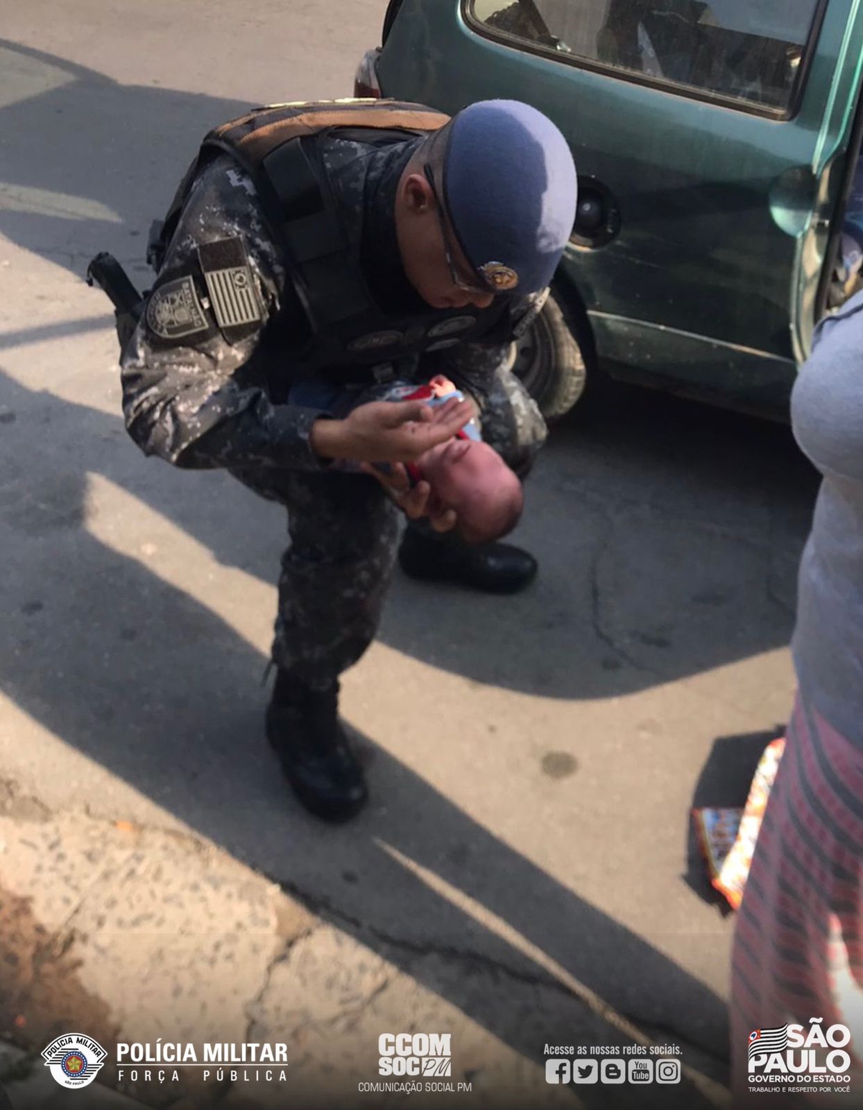 Quarta-feira (8), os policiais militares do 3º Batalhão de Polícia de Choque estavam em patrulhamento pela Estrada do Atalaia, em Cotia, quando visualizaram um veículo em alta velocidade. Imediatamente a equipe foi averiguar a situação e com a abordagem tomaram uma família em desespero, pedindo, por socorro, pois um recém-nascido havia engasgado e parado de respirar. Os policiais militares iniciaram a manobra de Heimlich e em alguns segundo o pequeno Leonardo, 15 dias, demonstrou sinais vitais e voltou a respirar normalmente. Em seguida uma equipe da Unidade de Resgate dos Bombeiros da Polícia Militar conduziu o bebê ao Pronto Atendimento Atalaia, onde a criança recebeu atendimento médico.