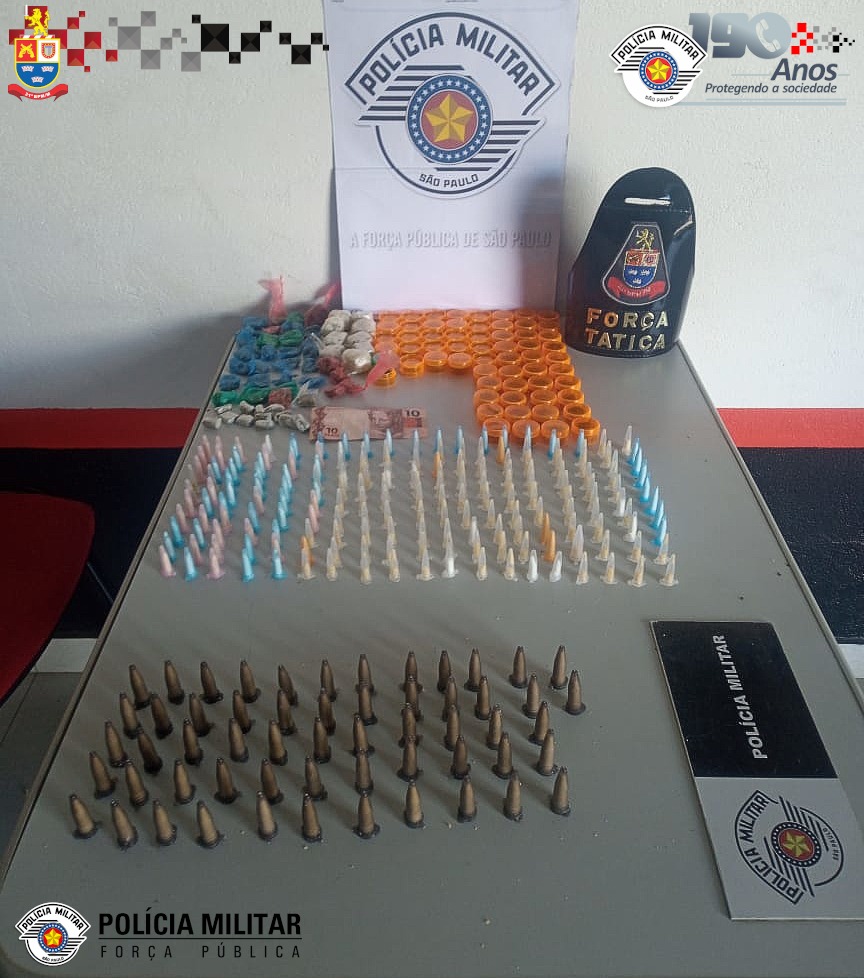 Os militares realizavam patrulhamento quando suspeitaram do indivíduo. Ele tentou fugir, mas acabou detido. Durante a busca pessoal foram encontradas porções de maconha e cocaína, prontas para venda e consumo, além de dinheiro oriundo do tráfico de drogas.