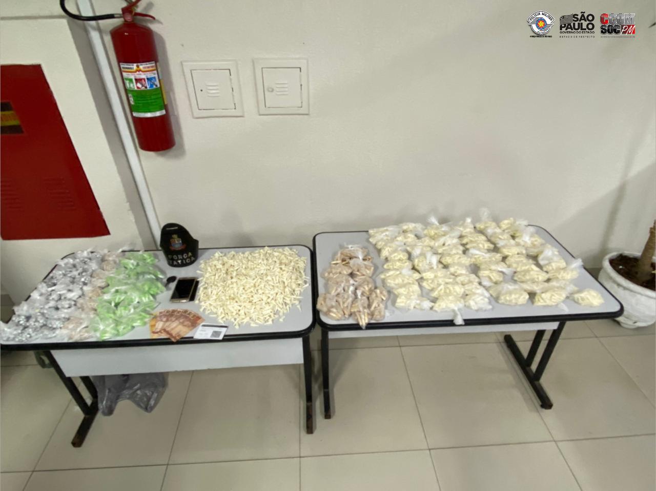 Quarta-feira (20), policiais militares Força Tática do 27º Batalhão de Polícia Militar Metropolitano realizavam o patrulhamento pela Rua Belizário Ferreira de Lima, onde abordaram o condutor do veículo Celta Prata, que ao notar a presença da equipe, esboçou certo nervosismo arrancando bruscamente com o veículo. A equipe prosseguiu com a abordagem, e na busca veicular foram localizados 6.600 pinos com cocaína, 1.950 pedras de crack e R$ 90,00. A ocorrência foi apresentada no 101° Distrito Policial, onde o criminoso permaneceu à disposição da Justiça.