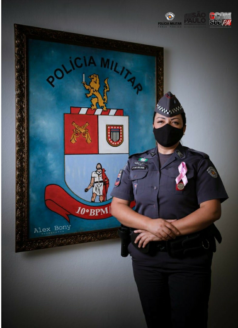 Essa é a Sgt PM Dias, do 10° Batalhão de Polícia Militar Metropolitano, em 2010 ela descobriu o tumor em uma mama. Após tratamento, procedimento cirúrgico, o tumor voltou aparecer. Hoje, 10 anos depois, essa guerreira, que já retirou as duas mamas, que tomará medicamento por mais 10 anos, está passando na sua timeline para lembrar que o outubro rosa acabou, mas o seu cuidado não pode acabar. Por hoje, a nossa guerreira colocou o laço rosa sobre a farda, para não te deixar esquecer, que o auto cuidado não pode durar apensas um mês, mas todos os dias no ano.