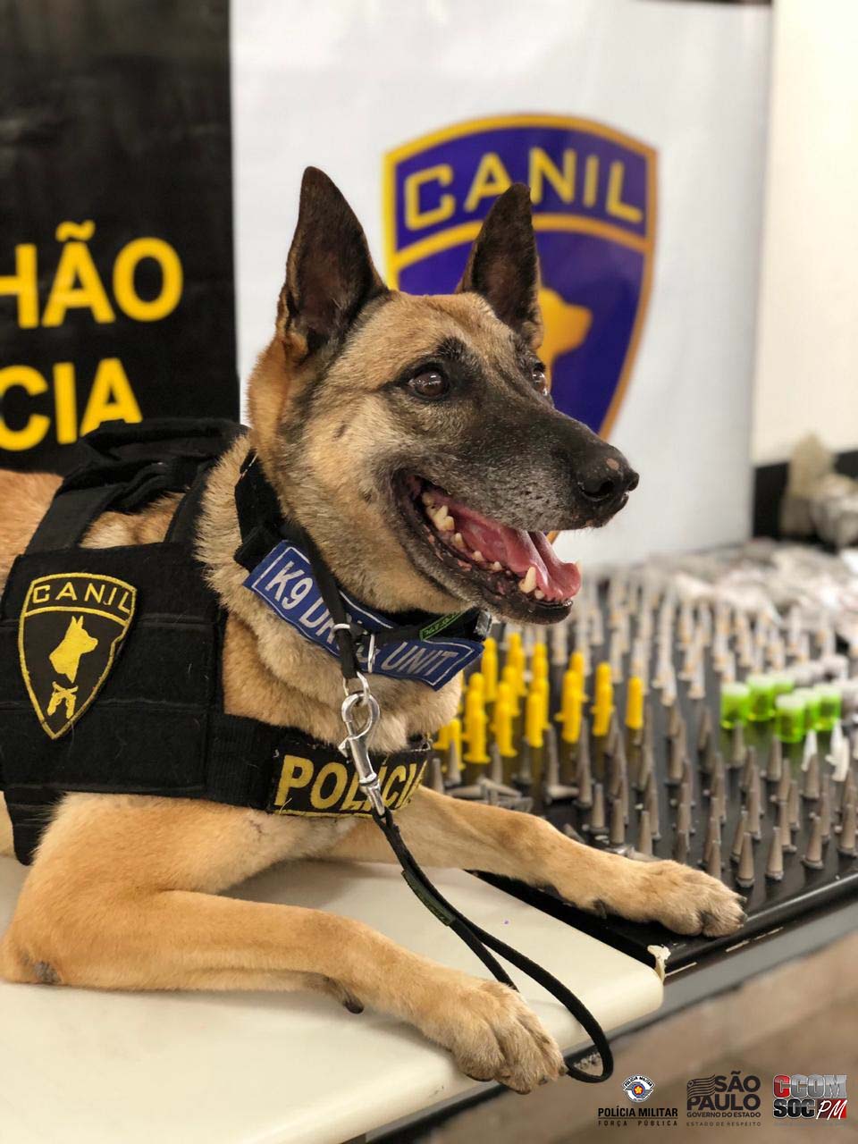 Sábado (16), os policiais miliares do 5º Batalhão de Polícia de Choque – Canil, em Operação de Combate ao Tráfico de drogas, pela Rua Itamonte, com o apoio da cadela policial Dara, que indicou odor de drogas vindo de sacos de entulho junto a um suspeito. Foram localizadas diversas porções de drogas, sendo apreendido o total de: