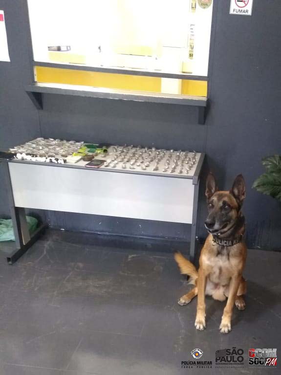 Com uma das mulheres na fila, foram localizadas algumas porções. Outra mulher que estava na fila ao perceber a presença dos cães farejadores abandonou a fila, andando rapidamente, o que ensejou a abordagem policial. Com essa segunda mulher foi encontrada mais porções de drogas.