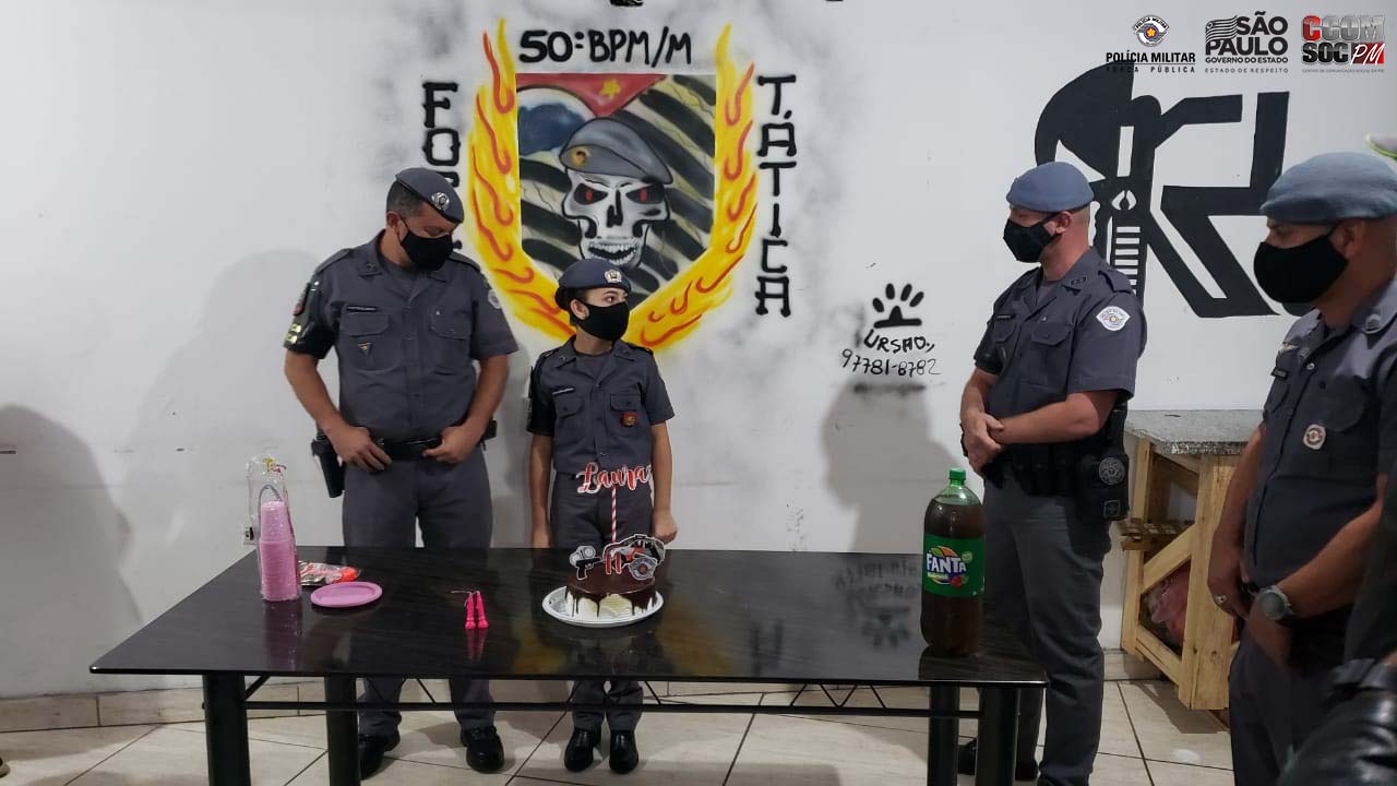 Sábado (17), os policiais militares da Força Tática do 50º Batalhão de Polícia Militar Metropolitano comemoraram o aniversário de 11 anos da pequena Laura.