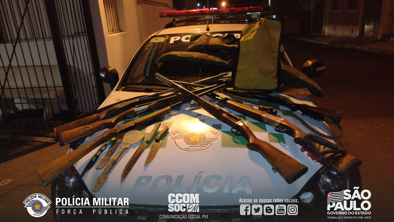 Na busca pessoal e veicular, os policiais militares localizaram 6 espingardas.