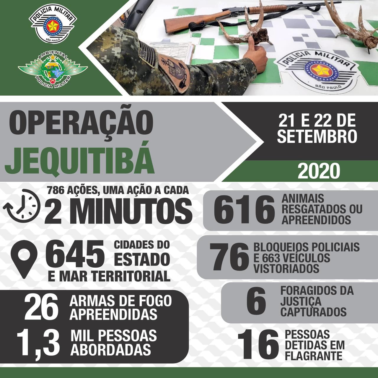 Realizada nos dias 21 e 22, a Operação foi deflagrada em comemoração ao Dia das Árvores e Dia do Policial Militar Ambiental, com o emprego de 1.320 policiais militares em 452 viaturas quatro rodas e 52 náuticas.