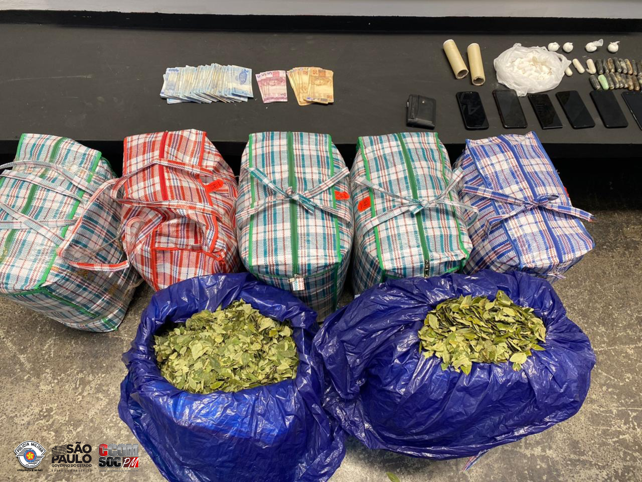 Terça-feira (3), policiais militares do 7º BAEP – Batalhão de Ações Especiais de Polícia realizavam o patrulhamento pela Rua José Monteiro, onde visualizaram e abordaram dois homens em atitude suspeita. Com eles foram localizados três celulares que após pesquisa da numeração do IMEI foi constatado que eram roubados. Indagados, eles revelaram que possuíam mais equipados em uma residência na Rua Belo Horizonte, onde além de mais 6 celulares, a equipe localizou pasta base de cocaína, 120 kg folha de coca, R$ 1.737,00. Indagado sobre a origem das drogas os abordados informaram que iriam comercializar as drogas  na região do Brás. A ocorrência no 81º Distrito Policial, onde os criminosos permaneceram à disposição da Justiça.