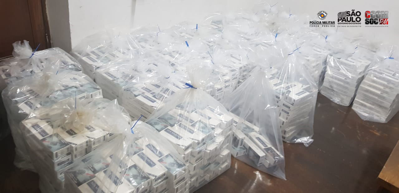 Durante a abordagem a um veículo Fiat/Doblo foram localizados 12 mil maços de cigarros, divididos em caixas, oriundos do Paraguai. O valor aproximado de revenda seria de R$ 62.500,00.