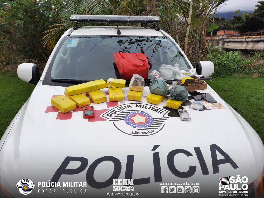 Terça-feira (08), Policiais Militares do 20º Batalhão de Polícia Militar do Interior receberam informações de moradores que um indivíduo havia recebido uma grande quantidade de drogas. No local indicado, foram abordados dois indivíduos, e após busca domiciliar foram localizados 07 tijolos e 05 porções de maconha, 07 porções de cocaína e R$ 107,00, além de objetos para corte e preparo das drogas e uma máquina de cartão. A ocorrência foi apresentada no Distrito Policial, ficando os indiciados à disposição da Justiça.