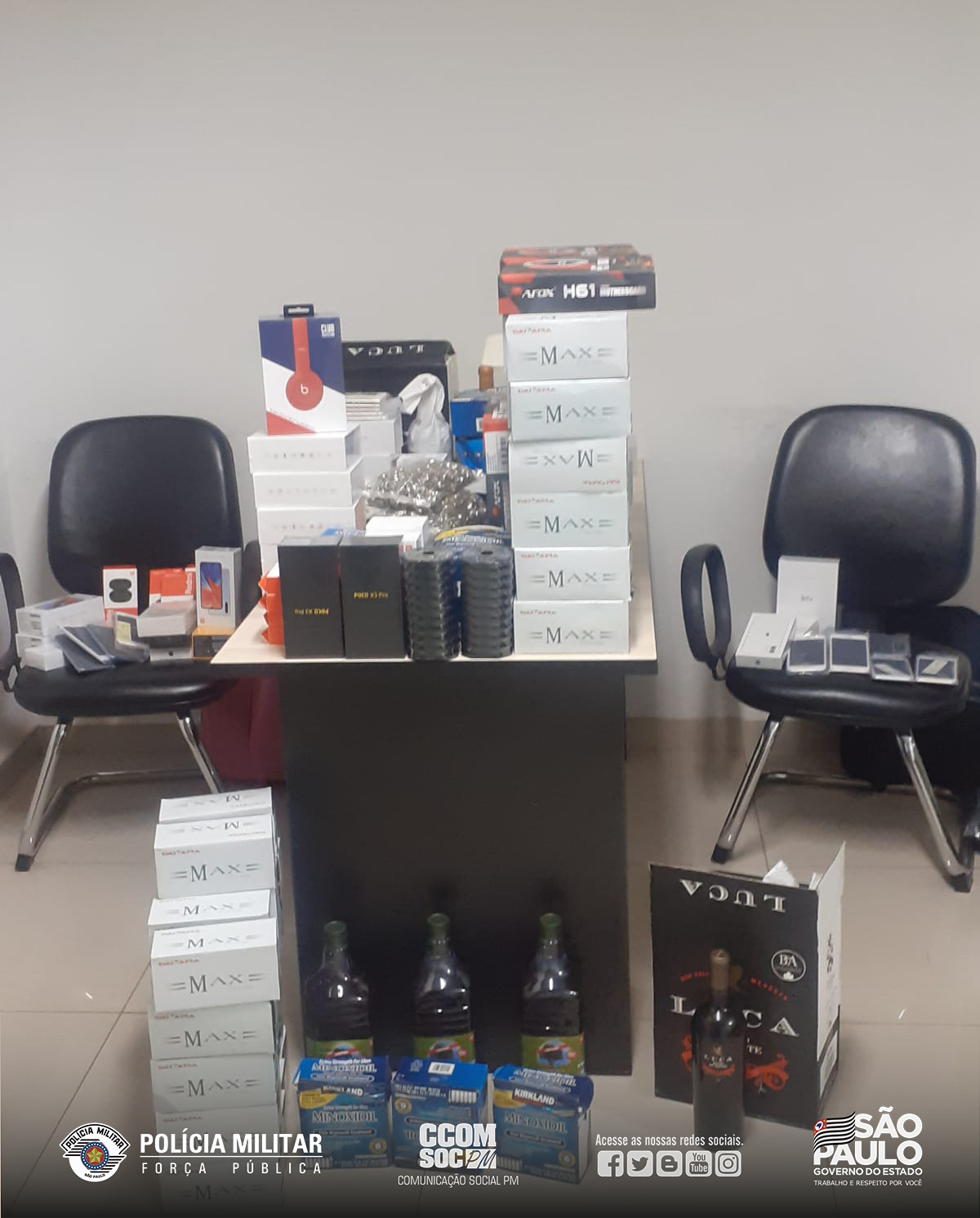 A abordagem ocorreu na Rua Rubião Junior, depois que o motorista teria avançado o sinal vermelho. Durante a busca veicular, os PMs localizaram grande quantidade de produtos, oriundos do Paraguai.