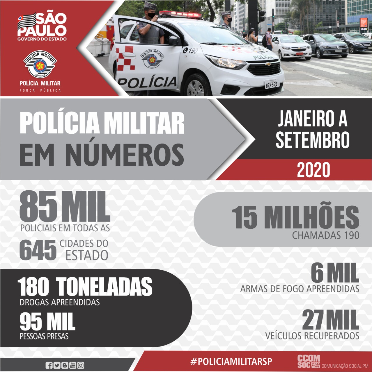 InícioPolícia MilitarPMESP POLÍCIA MILITAR EM NÚMEROS Redação 5 de outubro de 2020 Compartilhar FacebookTwitterPinterestWhatsAppTelegram Confira os resultados obtidos entre Janeiro a Setembro de 2020. #POLICIAMILITARSP #AFORÇAPÚBLICADESÃOPAULO COMUNICAÇÃO SOCIAL PMESP Fonte BLOG PMESP Redaçãohttps://policiamentointeligente.comPortal Especializado em Segurança Pública e Política. Notícia anteriorOperação Horus apreende produtos oriundos de contrabando em São BorjaPróximo notíciaHomem é preso e arma de fogo apreendida pela PM em Turiaçu-MA • PM/MA - PUBLICIDADE - COMENTÁRIOS NOTÍCIAS RELACIONADAS Desembargador que já humilhou e ofendeu Guardas Municipais é afastado por TJ-SP após chamar PM de “analfabeta” PMESP POLÍCIA MILITAR RODOVIÁRIA APREENDE MUNIÇÕES E ARMA DE FOGO COM NUMERAÇÃO SUPRIMIDA EM BAURU PMESP - PUBLICIDADE - Últimas Notícias PF cumpre mandado de busca e prende alvo em flagrante por posse ilegal de arma de fogo Exército inicia no Rio incorporação da 1ª turma de mulheres recrutas PF cumpre mandado de prisão contra suspeito por crimes contra crianças e adolescentes - PUBLICIDADE - - PUBLICIDADE -