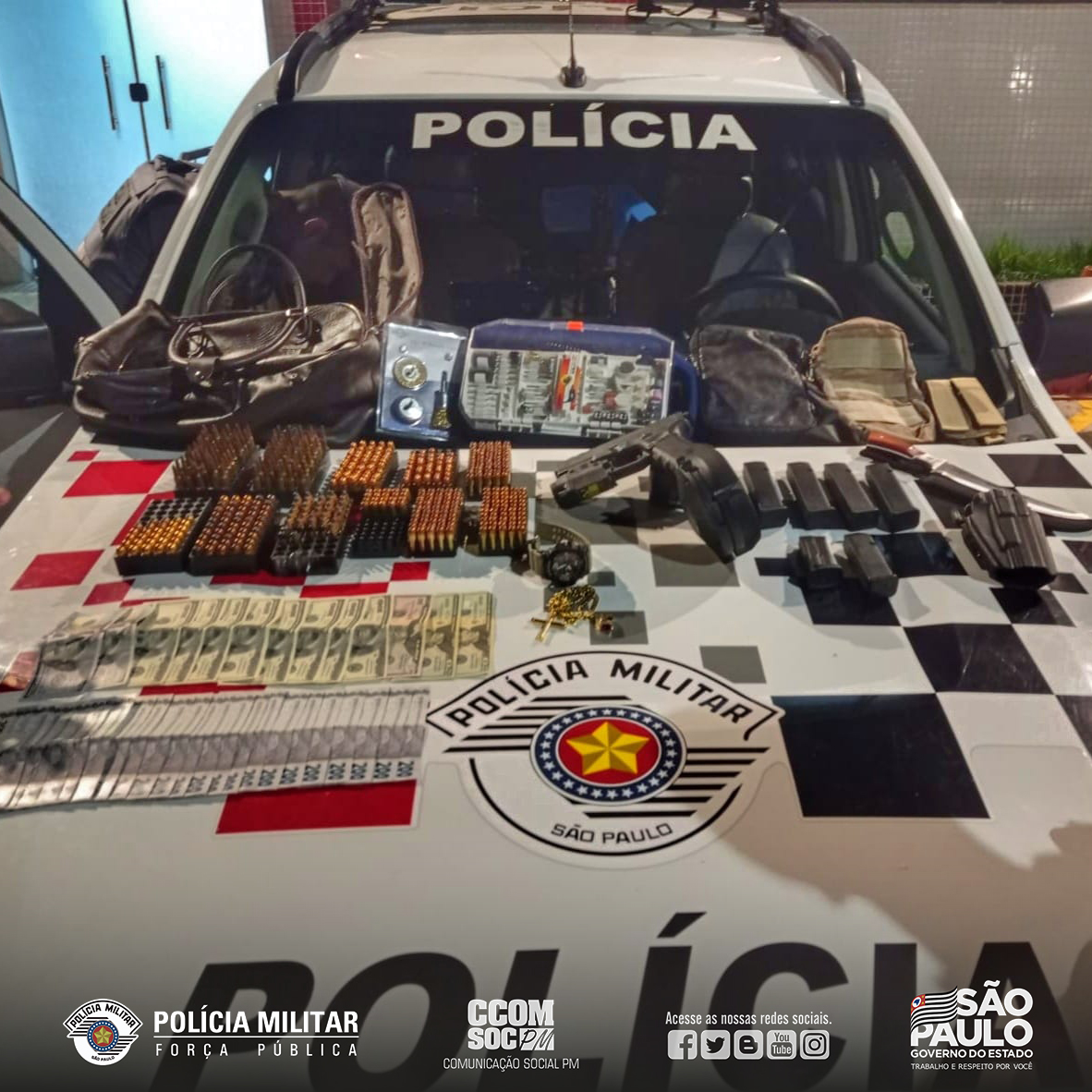 Na busca pessoal, a equipe encontrou na bolsa da mulher, uma pistola semiautomática da marca Glock, diversos carregadores, um no formato caracol, diversas munições de vários calibres, inclusive de fuzil.