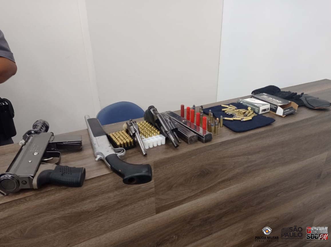 Na tarde de ontem (12), Policiais Militares da 2ª companhia do 17º Batalhão de Polícia Militar Metropolitano efetuaram a prisão de um indivíduo com diversas armas e grande quantidade de munições, em Mogi das Cruzes. A ação aconteceu depois de uma denúncia por meio do COPOM (Centro de Operações da Polícia Militar), de que na avenida Ricieri Bertaiolli Junior havia um cárcere privado. Com base nas informações, as equipes foram até o local e não constataram o cárcere, mas visualizaram um veículo na via, e o motorista demonstrou nervosismo ao notar a presença da Polícia Militar. Realizada a abordagem e busca pessoal foram localizados com o indivíduo dois revólveres, já na busca veicular, as equipes encontraram uma metralhadora nove milímetros, uma escopeta, carregadores e diversas munições. O indivíduo, que estava com sua esposa e filhos, trajando vestimentas da cultura árabe alegou que era comerciante e que estava na cidade para vender acessórios elétricos. Todos foram conduzidos para a Central de Flagrantes de Mogi das Cruzes. O indivíduo permaneceu à disposição da Justiça.