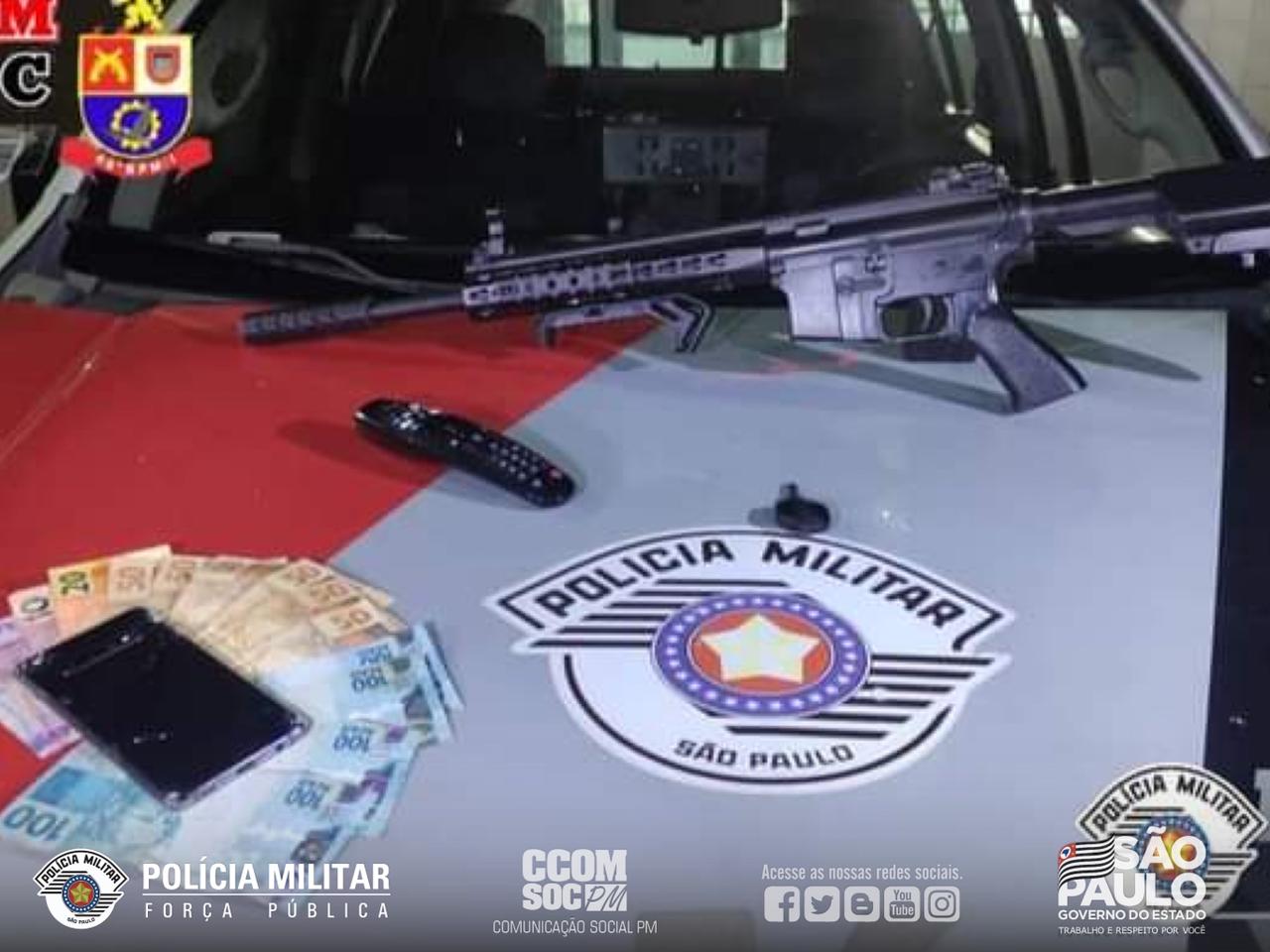 Sábado (10) policiais militares do 46º Batalhão de Polícia Militar Metropolitano prenderam um criminoso por envolvimento em roubos e furtos, em São José dos Campos. A equipe realizava o patrulhamento quando abordaram o individuo conduzido um veículo. Indagado, ele confessou ser o autor de alguns delitos na região, bem como foi reconhecido por uma vítima de roubo. O criminoso ainda revelou que em sua residência existia alguns objetos ilícitos. No liceal a equipe apreende uma replica de fuzil, um veículo dinheiro e uma televisão. A ocorrência foi apresentada na Delegacia de Polícia, onde o criminoso permaneceu à disposição da Justiça.