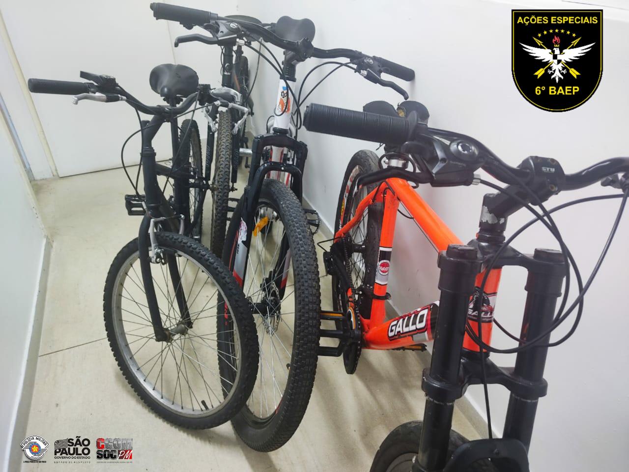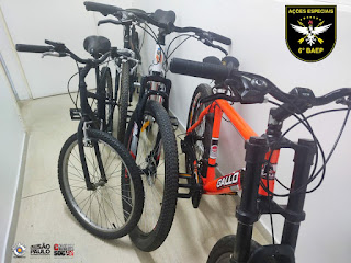 Quarta-feira (13), policiais militares do 6º BAEP – Batalhão de Ações Especiais de Polícia prenderam um criminoso e apreenderam três adolescentes pelo crime de roubo. A ação aconteceu nesta na Rua dos Dominicanos, no Jardim Santo André, em Santo André. Os policiais militares realizavam patrulhamento quando três pessoas que ocupavam um carro pediram ajuda, informando que uma delas tinha acabado de ter sua bicicleta roubada por três criminosos. Outro ocupante do veículo também relatou ter sido vítima de roubo no dia anterior por indivíduos com as mesmas características. Imediatamente os policiais foram até os três jovens apontados como sendo os autores do crime, conseguindo deter um deles. O adolescente estava em uma bicicleta preta, sem marca, e após ser questionado confessou ter participado do roubo e informou o local onde os outros autores poderiam ser localizados. No local informado pelo infrator, mais três criminosos foram detidos. Com um deles, maior de idade, foi localizada a bicicleta e pertences da vítima, assim como um simulacro de arma de fogo. Com outro abordado, foi encontrada a bicicleta utilizada no crime e um celular subtraído um dia antes de uma das vítimas que estavam no carro. A bicicleta e outros pertences das vítimas foram restituídos. Outras três bicicletas utilizadas pelo grupo, assim como o simulacro de arma de fogo foram recolhidos. Os quatro criminosos foram levados ao 6º Distrito Policial da cidade, onde a ocorrência foi registrada como roubo e ato infracional.