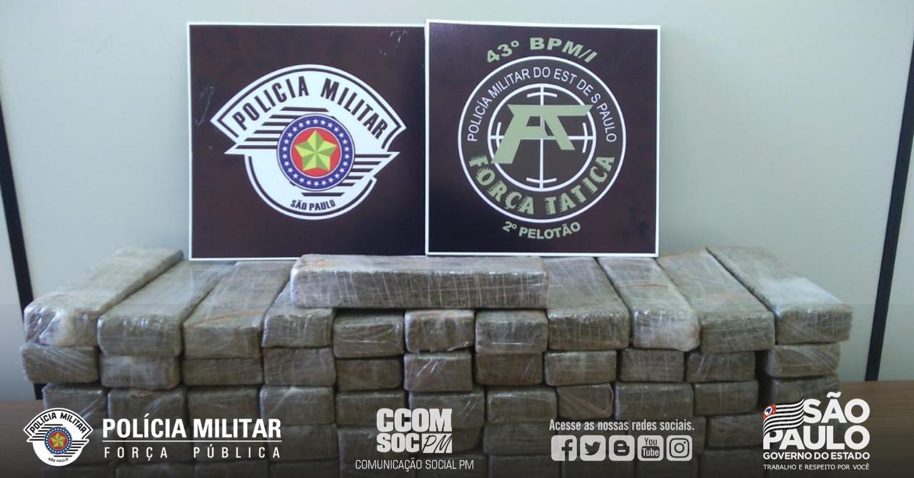 Policiais Militares da Força Tática do 43º Batalhão de Polícia Militar do Interior foram verificar uma denúncia sobre o armazenamento de drogas, em uma casa, na Rua Nelson Spelman, Jaboticabal. No local, a equipe prendeu um criminoso, e com apoio do Canil, obteve sucesso em apreender 56 tijolos de maconha, totalizando 31 kg da droga. A droga estava escondida em uma máquina de serralheria. A ocorrência foi apresentada na Delegacia de Polícia, onde o criminoso permaneceu à disposição da Justiça.
