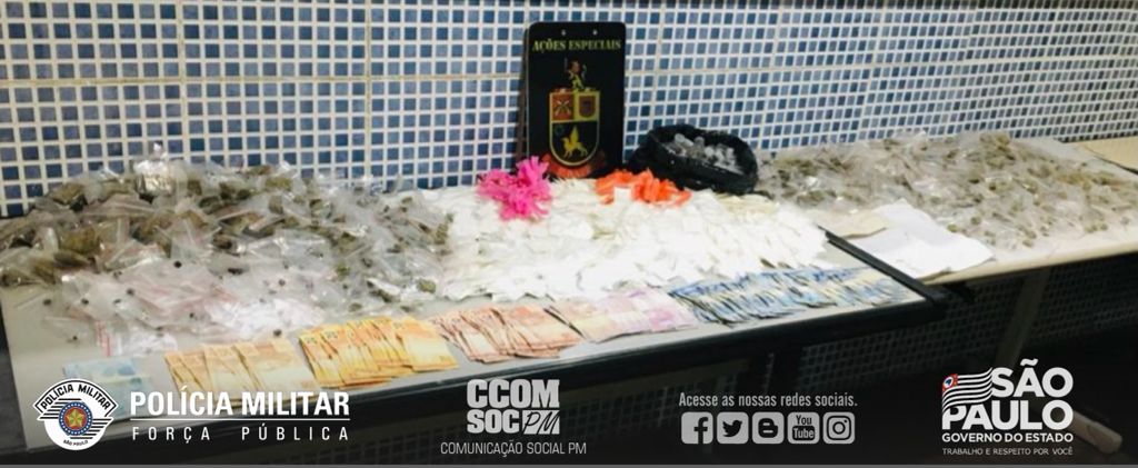 Quinta-feira (12), durante o patrulhamento pelo município de Itapevi, a equipe do 5º BAEP – Batalhão de Ações Especiais de Polícia suspeitou das atitudes de dois indivíduos, os quais ao tentaram empreender em fuga, mas foram detidos. Com eles a equipe apreendeu 146 porções de maconha e R$ 226,00. Indagados, eles indicaram uma casa usada para o preparo das drogas. No local, mais um criminoso foi detido, e no imóvel foram encontradas 549 porções de cocaína, 120 pedras de crack, 1.025 porções de maconha e R$ 2.000,00. A ocorrência foi apresentada no 1º Distrito Policial de Itapevi, onde os criminosos permaneceram à disposição da Justiça.