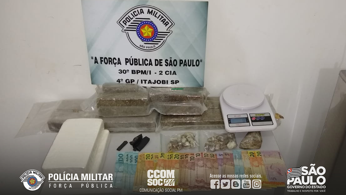 Sábado (12), policiais militares do 30º Batalhão de Polícia Militar do Interior receberam denúncia de que dois indivíduos em um veículo Honda Civic prata estavam traficando drogas.