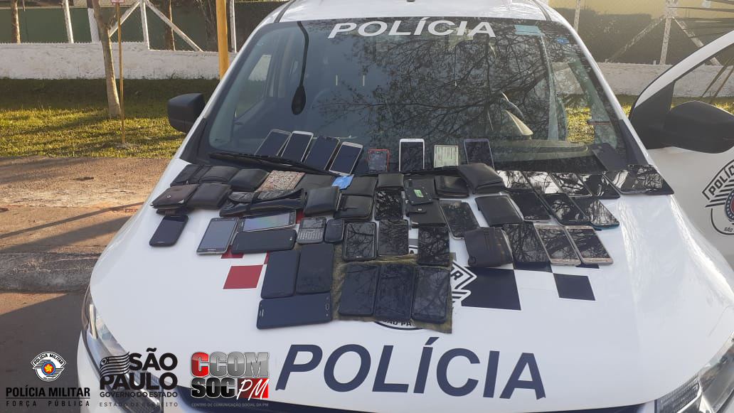 Todos os objetos foram encaminhados ao 100° Distrito Policial, onde Delegado de Plantão devolveu celulares a cinco vítimas que compareceram ao local.