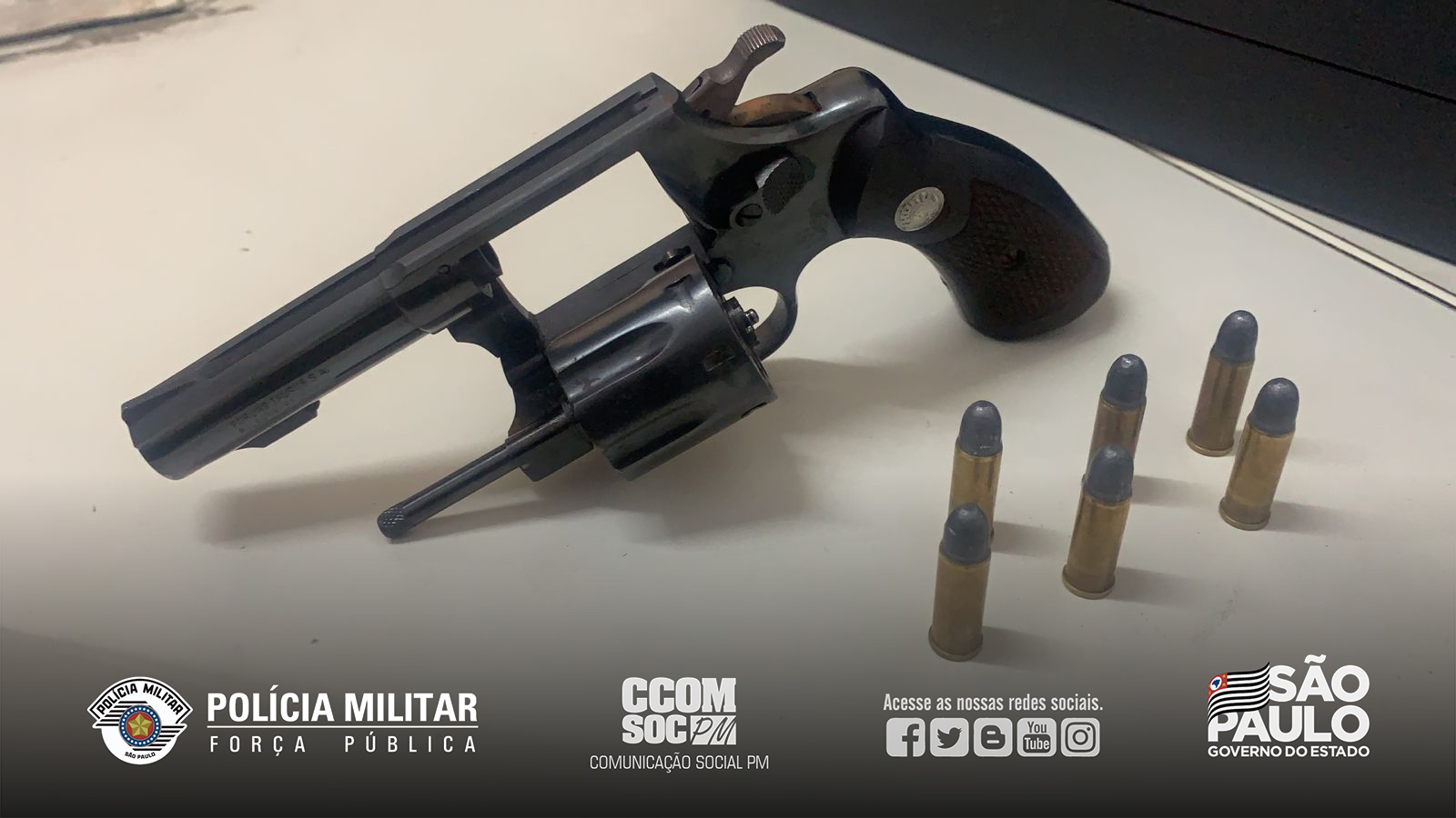 Houve um breve acompanhamento até os criminosos colidirem com outro carro. Eles foram abordados e detidos com o apoio da Guarda Municipal de São Caetano portando um revólver Taurus com 5 munições intactas e numeração suprimida.