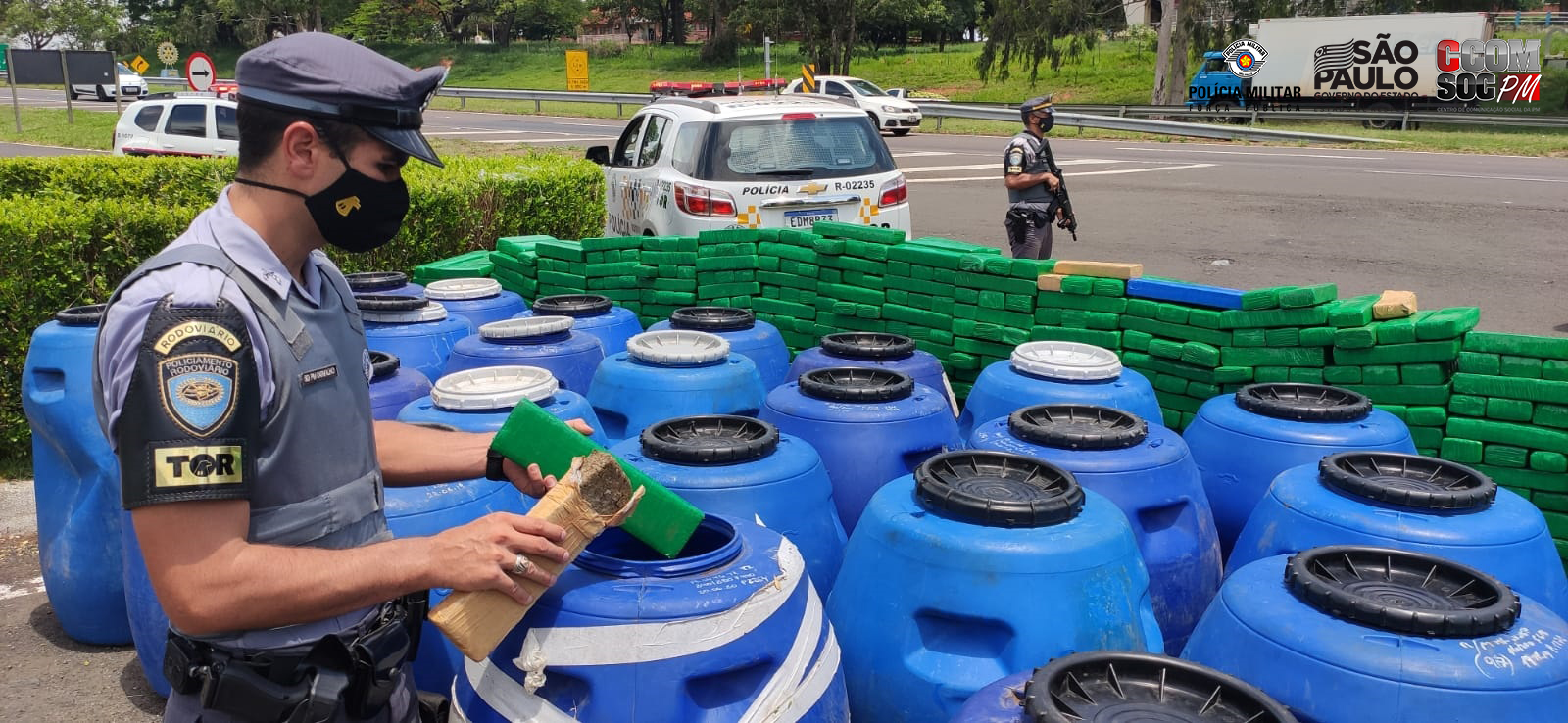 Após a realização de toda a fiscalização e busca veicular, os PMs localizaram grande quantidade de maconha escondidas em barris. A droga ainda está sendo contabilizada na Delegacia de Polícia Judiciária de Presidente Prudente.