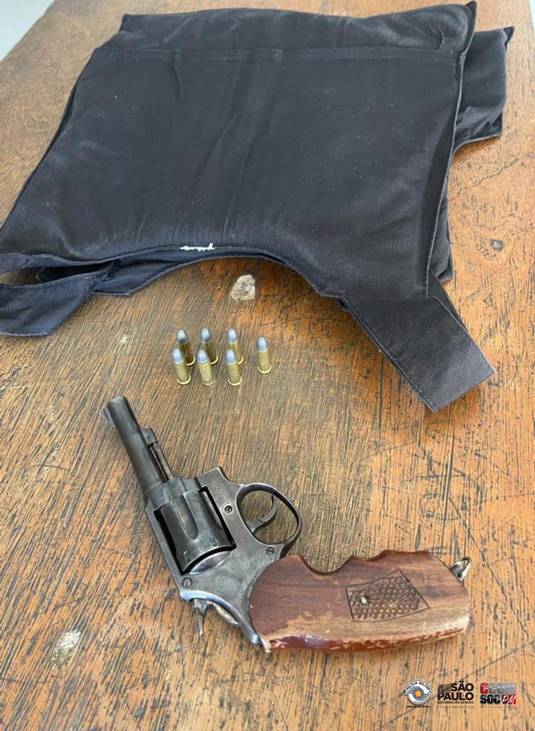 Realizada as buscas nos veículos, sendo localizado um revólver com seis munições e um colete balístico no veículo do condutor ébrio. Indagado, informou a equipe que trabalha como vigilante e tanto a arma quanto o colete são pertencentes a empresa. Disse ainda que pegou o material bélico no cofre da empresa, uma vez que ele tinha acesso ao cofre e as chaves, pegando-os sem que seus superiores soubessem.