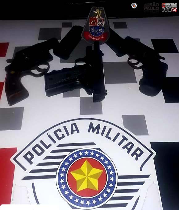 Realizada a abordagem, foram localizados dois revólveres calibre 38 e uma pistola .40 e 25 munições intactas de calibres diversos.