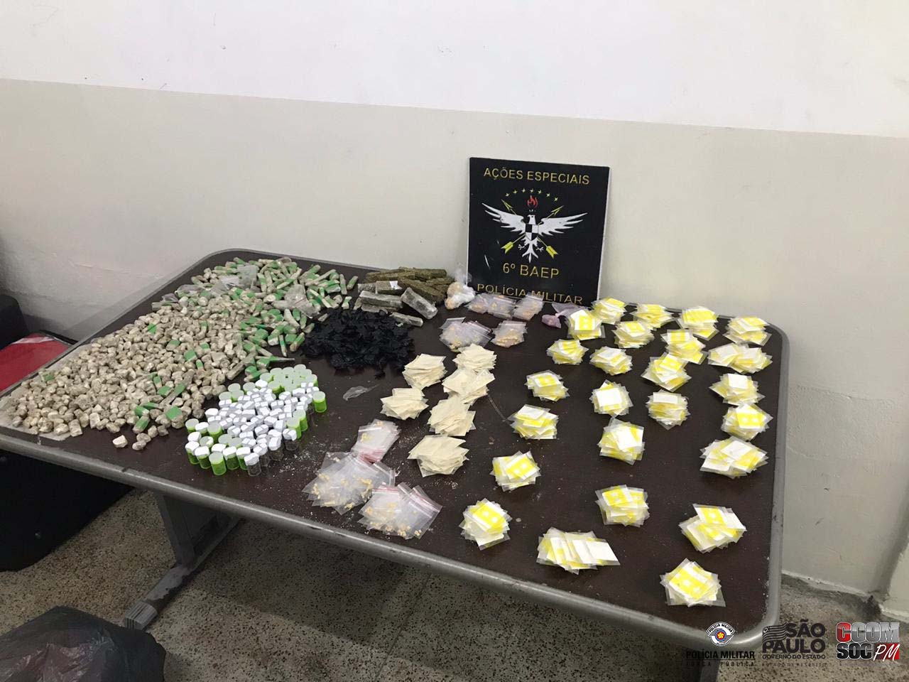Realizada a abordagem, foi localizado dentro da “Bag” o total de: 674 porções de maconha, 263 porções de crack e 498 porções de cocaína.