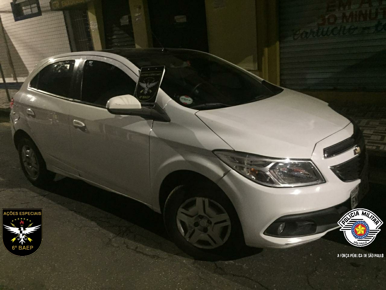 A equipe foi informada pelo Centro de Operações – COPOM que um veículo GM/Onix roubado estaria nas imediações. Imediatamente, os PMs intensificaram o patrulhamento e se depararam com o Honda/HRV, também produto de roubo.