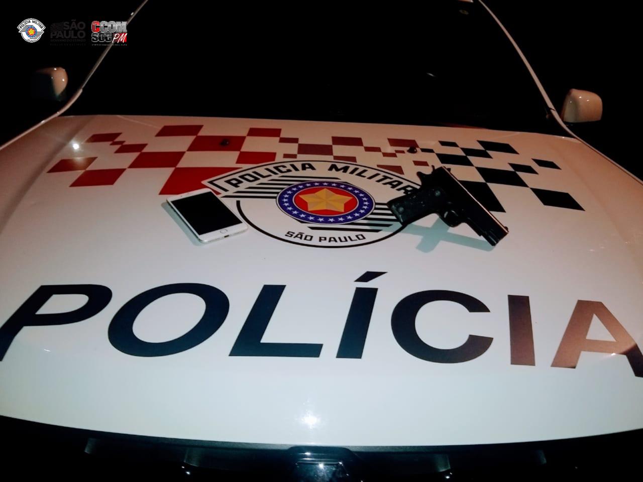 Sexta-feira (1º), policiais militares que estão atuando na Operação Verão,  estavam pela Rua Carolina Vanderstapen, em Ilhabela, onde avistaram um indivíduo correndo,  e logo ouviram populares gritando que era um “ladrão”. Os policiais militares conseguiram abordar o suspeito, e na busca pessoal localizaram o celular proveniente do roubo. Com o criminoso também foi localizado um simulacro. Indagado, ele revelou as características do seu parceiro no crime, o qual posteriormente também foi preso. A dupla foi levada ao Plantão Polícia, onde foram reconhecidos pela vítima, e permaneceram à disposição da Justiça.