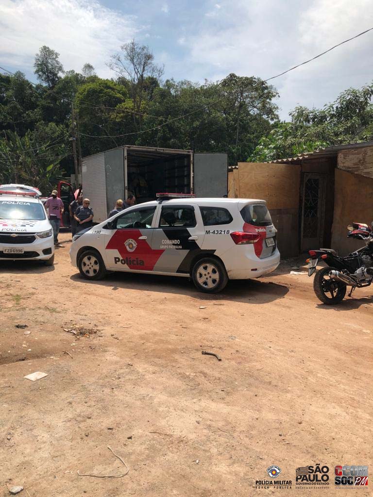 No local, foram surpreendidos cinco indivíduos fazendo o corte de um veículo Onix, e um caminhão carregado com peças de outro veículo, que após consulta do chassi, foi constatada a condição de produto de roubo.