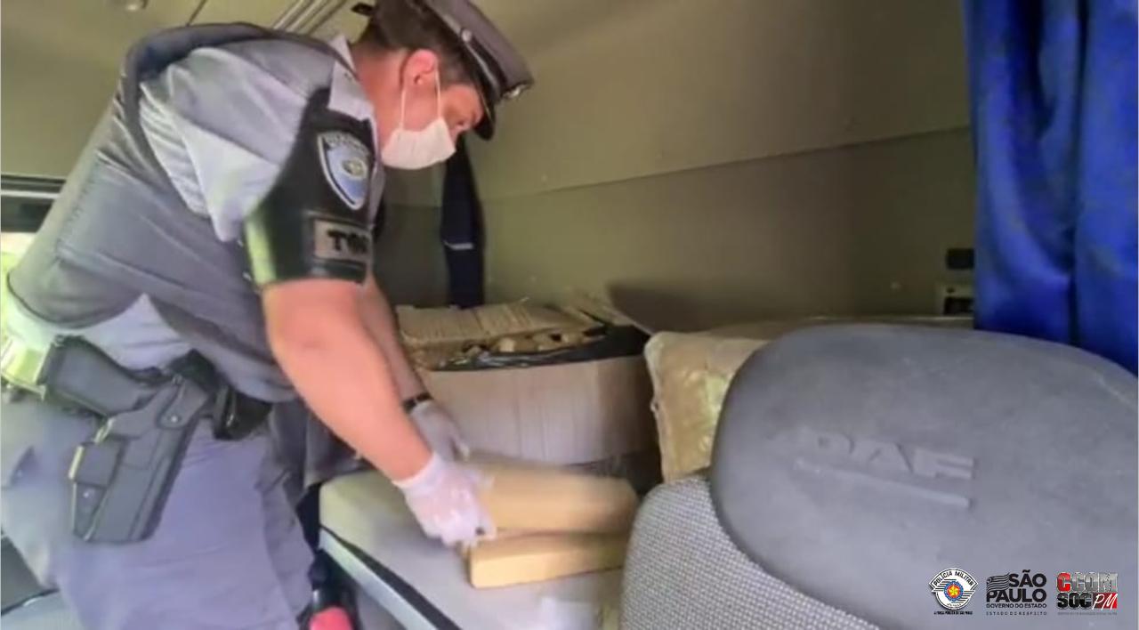 Segunda-feira (8), policiais militares do 5º Batalhão de Polícia Rodoviária prenderam três indivíduos em um posto de combustível, na Rodovia Castelo Branco, em Araçariguama. A equipe desconfiou e abordou dois indivíduos em atitude suspeita. Indagados, os abordados apresentaram informações controversas, mas que estavam ali aguardando uma encomenda. A equipe aguardou no posto e conseguiu abordar um terceiro indivíduo que chegou conduzindo um caminhão, e na vistoria veicular foi possível localizar 310 kg de maconha e R$ 9.800,00. A ocorrência foi apresentada na Delegacia de Araçariguama, onde os abordados permaneceram à disposição da Justiça.