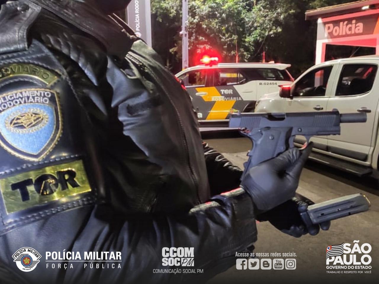Policiais Militares do 2º Batalhão de Polícia Rodoviária durante o desenvolvimento da “Operação São Paulo Mais Seguro”, quando pela Rodovia Marechal Rondon, em Andradina, abordaram os ocupantes da caminhonete GM/S-10, placas de Campo Grande/MS, e durante vistoria, dentro de uma mochila que era transportada no banco traseiro, localizaram uma pistola calibre .380 e munições. O condutor do veículo possui registro da arma em seu nome, porém não possui o porte, tão pouco providenciou guia de trânsito junto aos órgãos competentes para poder circular com a arma. O homem foi levado para Delegacia de Andradina/SP, onde foi arbitrada fiança, que não foi paga. O criminoso permaneceu o à disposição da Justiça.