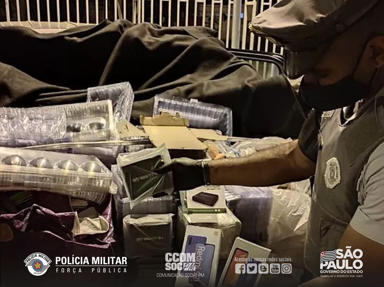 Sexta-feira (3), a Polícia Rodoviária apreendeu produtos oriundos do Paraguai. A apreensão ocorreu durante fiscalização na Rodovia Olímpio Ferreira da Silva, em Mirante do Paranapanema. A equipe abordou o veículo, com placas de Belo Horizonte (MG), conduzido por um indivíduo. Durante a fiscalização, foi constatado que o motorista estava transportando grande quantidade de mercadoria de origem estrangeira, sem documentação fiscal. Entre os produtos estavam celulares, brinquedos e receptores de TV de diversas marcas. O veículo e as mercadorias foram apreendidos e conduzidos para a Delegacia da Polícia Federal.