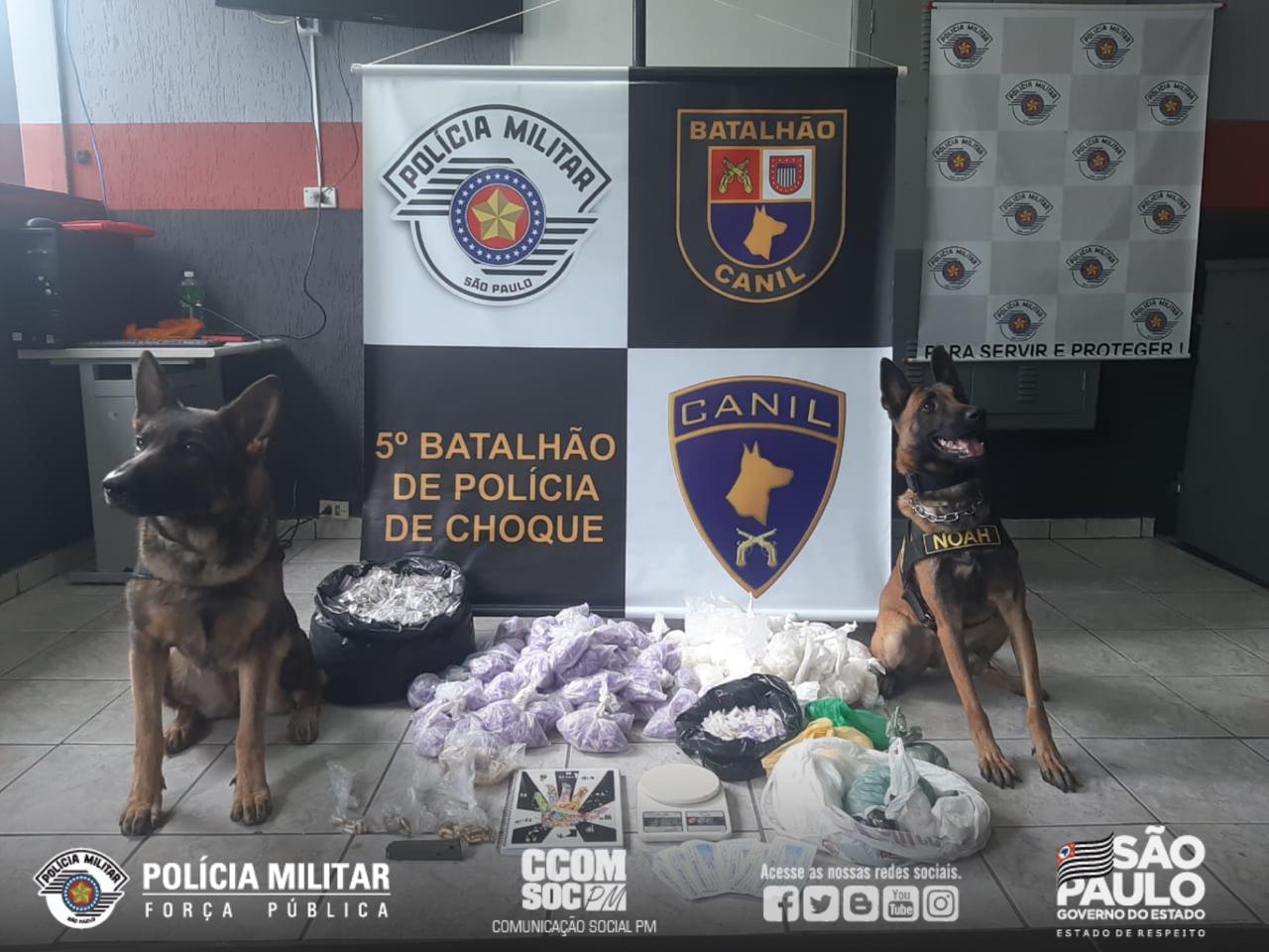 Sábado (29), policiais militares do 5º Batalhão de Polícia de Choque – CANIL, em operação pela Comunidade da Sapolândia, na zona leste, onde pela Boaventura Rodrigues da Silva, realizaram uma incursão pelas vielas, quando a cadela Aischa, inserida na patrulha, indicou odor de drogas vindo de um imóvel inabitado, sendo possível localizar e apreender 15,6 kg de cocaína, 4,4 kg de maconha, porções de crack, munições de diferentes calibres e a contabilidade sobre o tráfico de drogas. Ocorrência em andamento pelo 24º Distrito Policial.