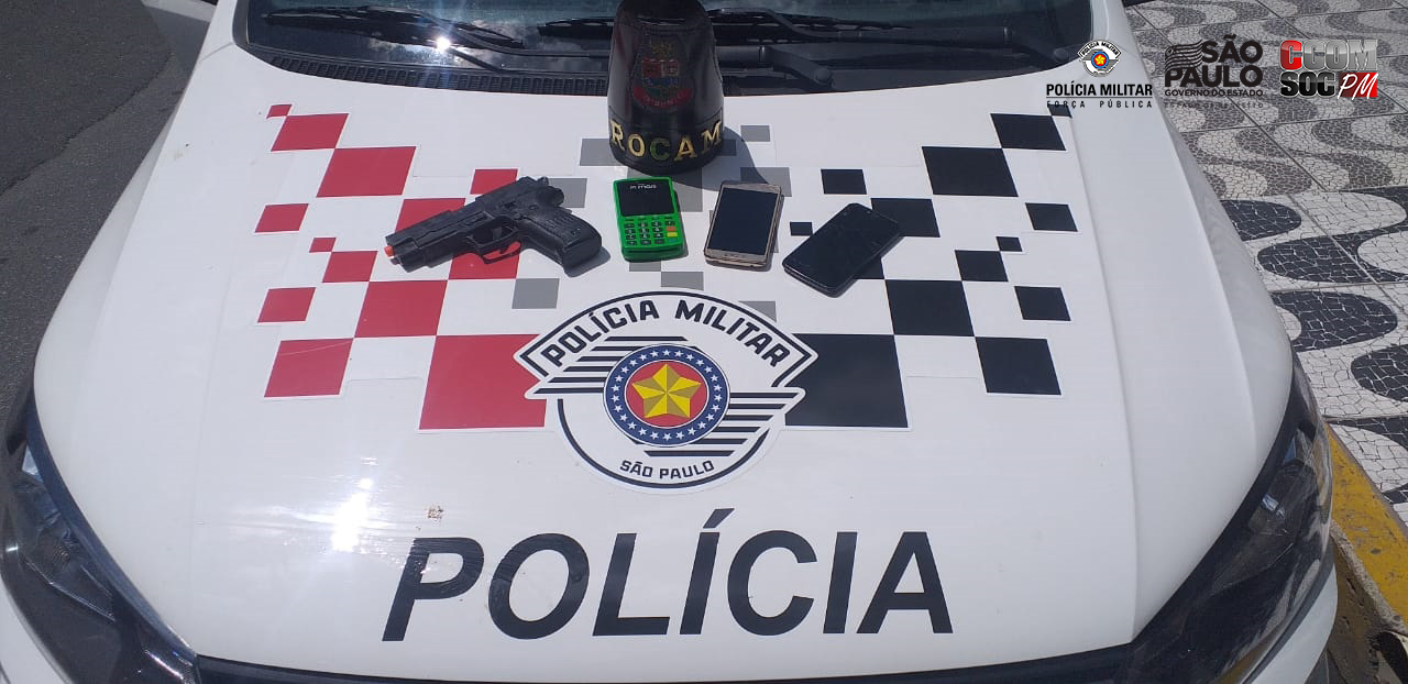 A equipe ROCAM (Rondas Ostensivas com Apoio de Motocicletas) estava em patrulhamento quando foi acionada para averiguar um indivíduo que se apresentava como policial. Na abordagem foi localizado um simulacro de pistola.