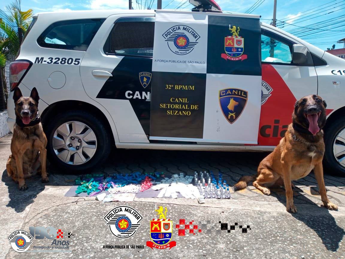 Ainda na manhã de hoje (2), os policiais militares do Canil do 32º Batalhão de Polícia Militar Metropolitano apreenderam mais de 3kg de drogas em Suzano. A operação contou com a ajuda dos cães Draco e Athos.