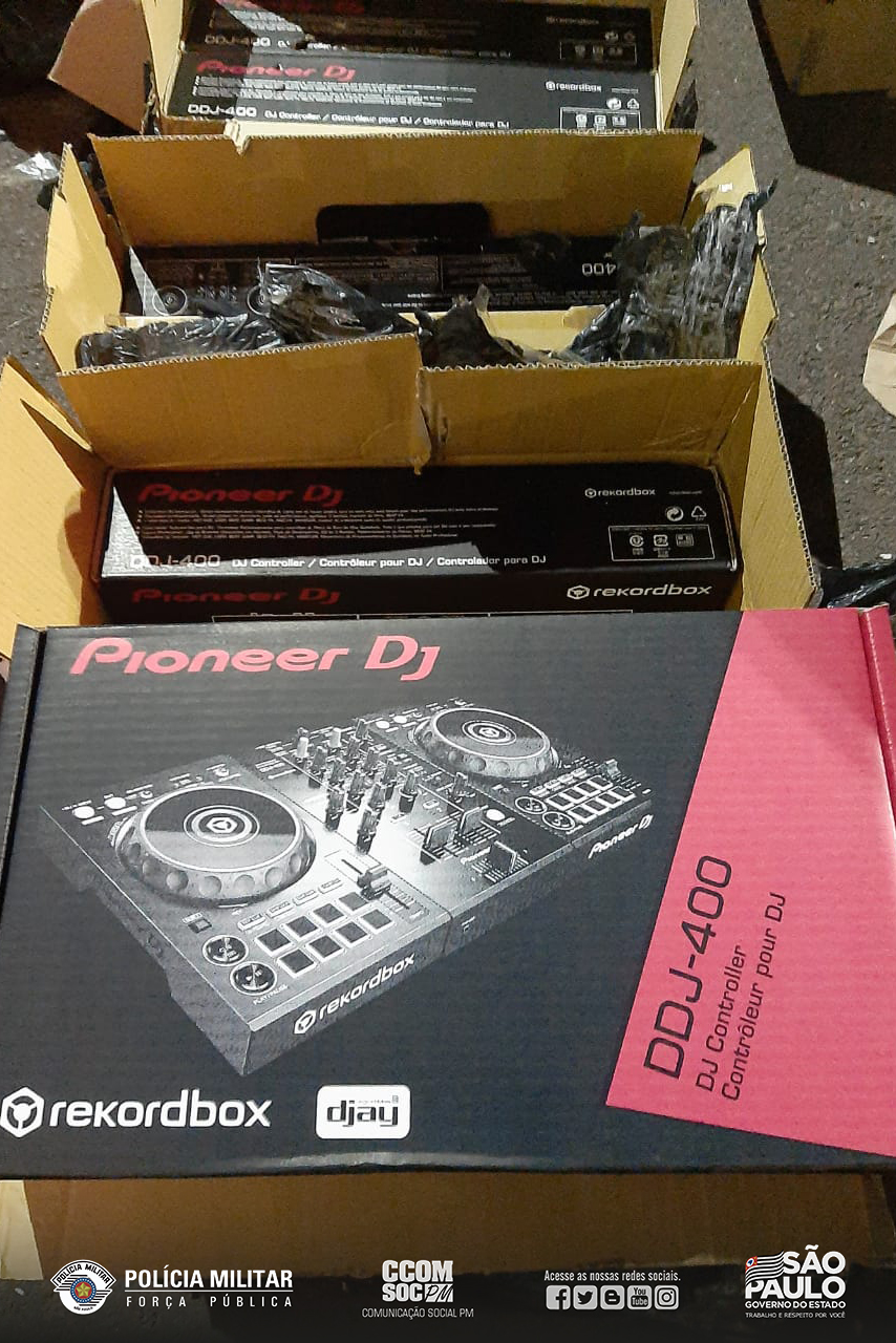 Domingo (04), policiais militares do 2º Batalhão de Polícia Rodoviária, durante Operação ”Rodovia Mais Segura” em combate ao Contrabando e Descaminho, e demais ilícitos penais, realizaram abordagem a um veículo de transporte de carga e na busca veicular localizaram no compartimento de carga, grande quantidade de produtos diversos oriundos do Paraguai e desprovidos de documentação fiscal, sendo 80 pacotes de cigarros, 08 Aparelhos Dj pioneer, 01 Denon Dj prime 4, 01 Seraro Dj controller, 08 fardos de óculos e 20 fardos de peças de vestuário diversas.