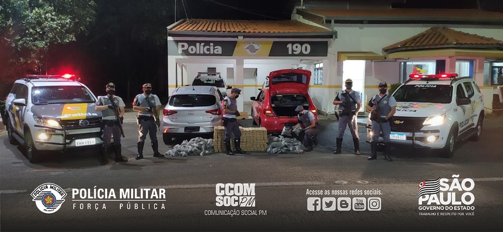 Durante a operação São Paulo Mais Seguro, as equipes TOR – Tático Ostensivo Rodoviário, em conjunto com a Polícia Federal, abordaram o veículo VW/Gol que ostentava placas de Campo Grande/MS. Na vistoria foram localizadas as verdadeiras placas, de Belo Horizonte/MG, além de diversos tabletes de maconha e skunk.